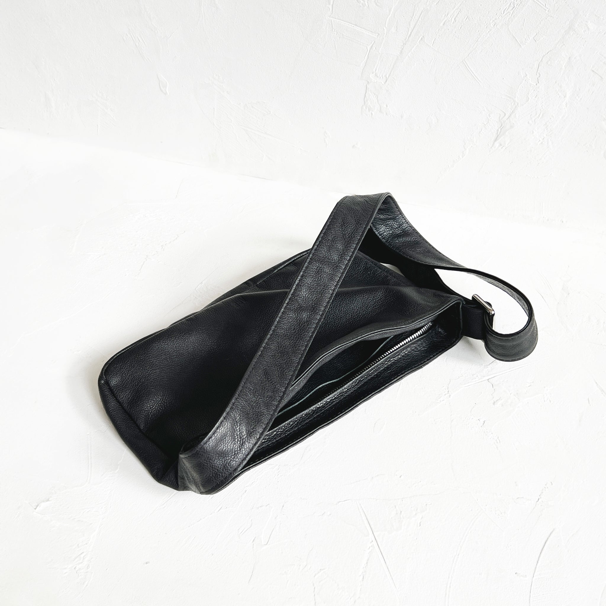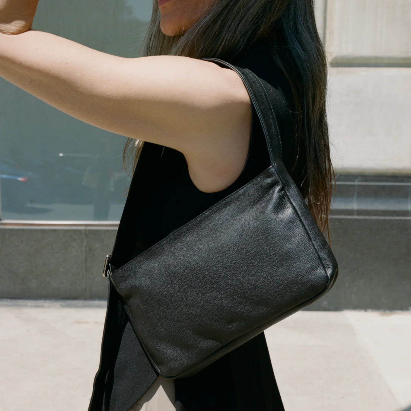 Baby version of the best selling Jane bag. A small, soft form shoulder bag with one adjustable flat shoulder strap. Featuring a minimal metal slider on the strap and one interior pocket. Unlined leather.