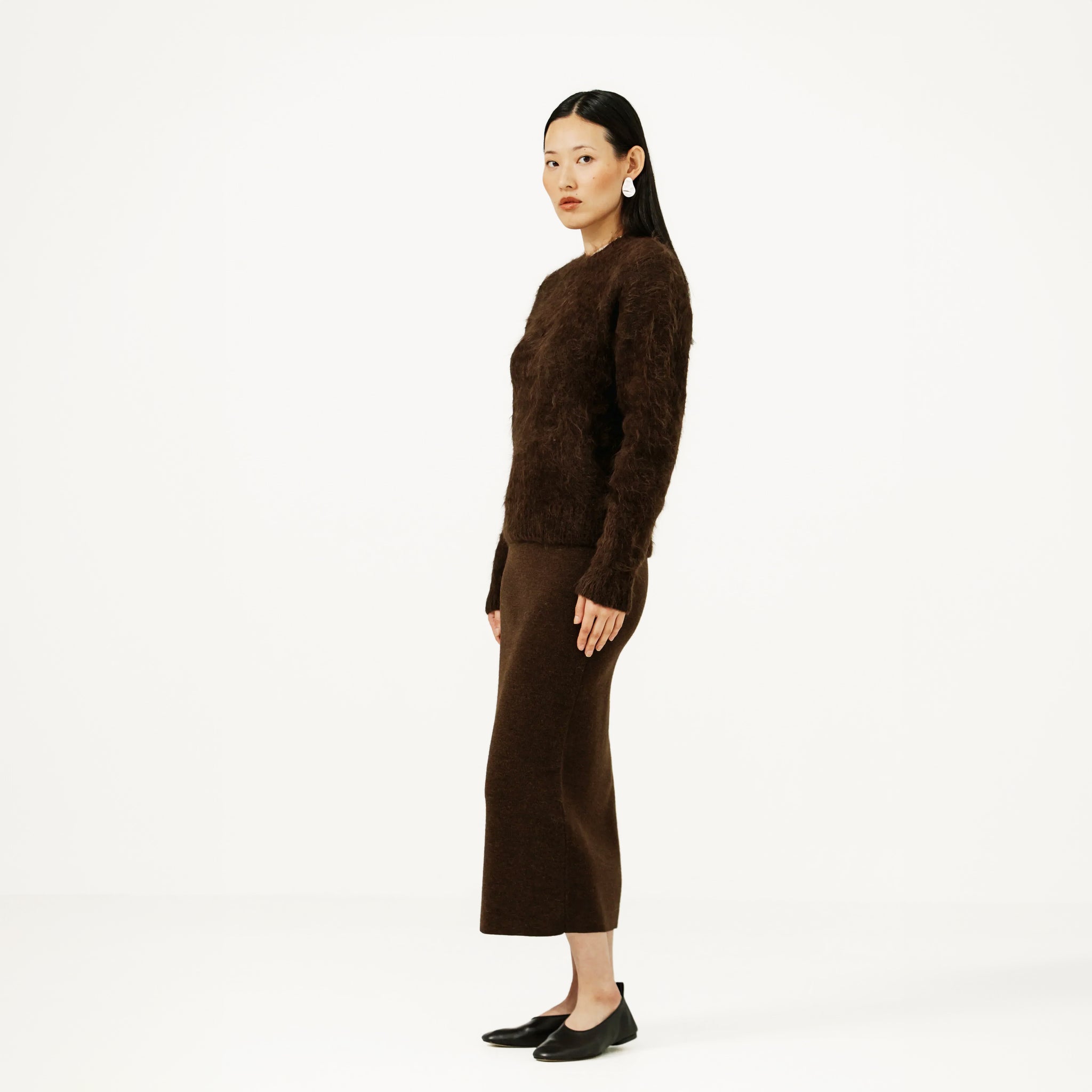 A mid-weight sweater with a relaxed silhouette and classic fit—ideal for layering. Knit from exceptionally soft Suri alpaca, its naturally long, silky fibres highlight the unique texture and beautiful drape of this rare Peruvian fibre.