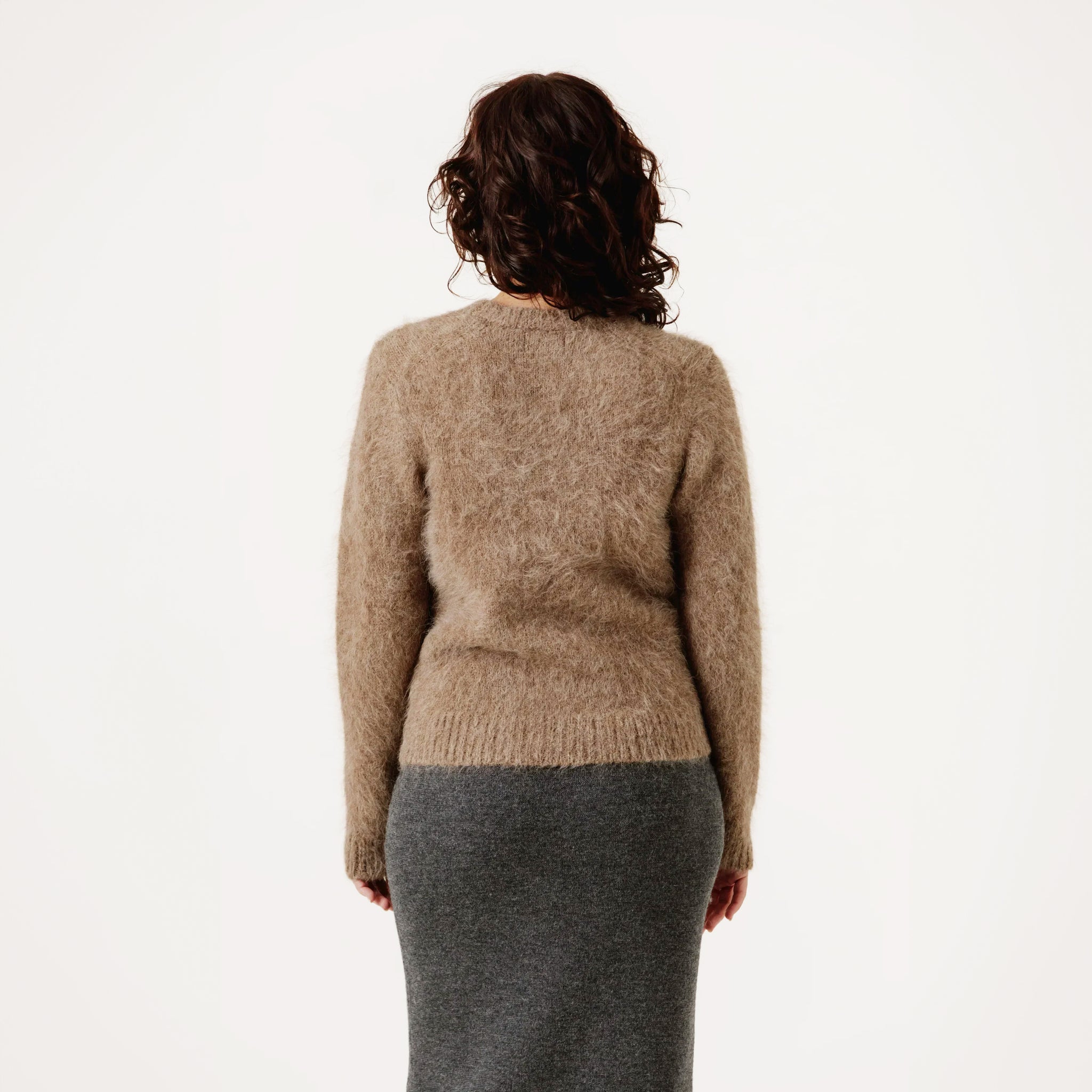 A mid-weight sweater with a relaxed silhouette and classic fit—ideal for layering. Knit from exceptionally soft Suri alpaca, its naturally long, silky fibres highlight the unique texture and beautiful drape of this rare Peruvian fibre.