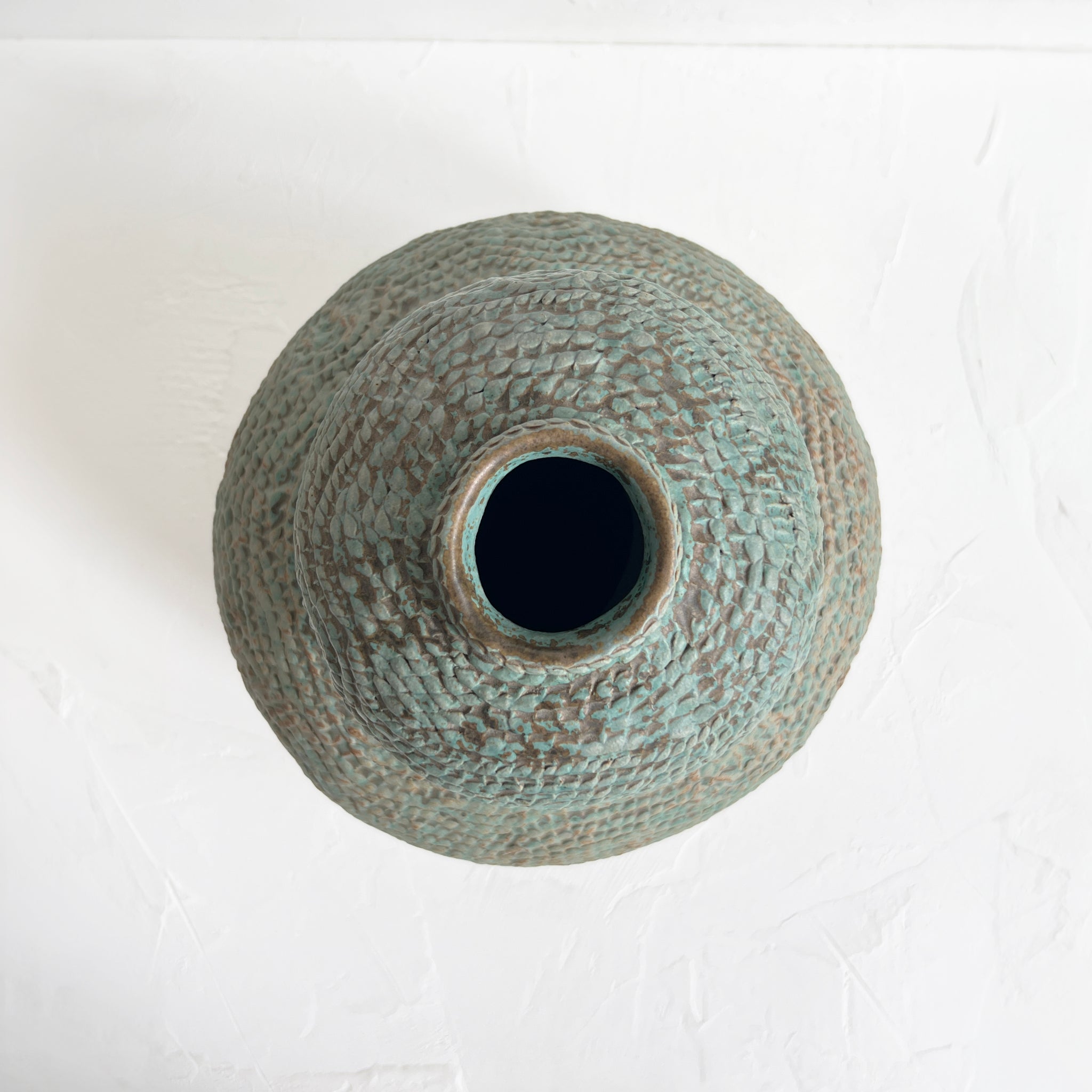 This large, hand-coiled vase in rich teal is ideal for showcasing your favorite dried flowers!