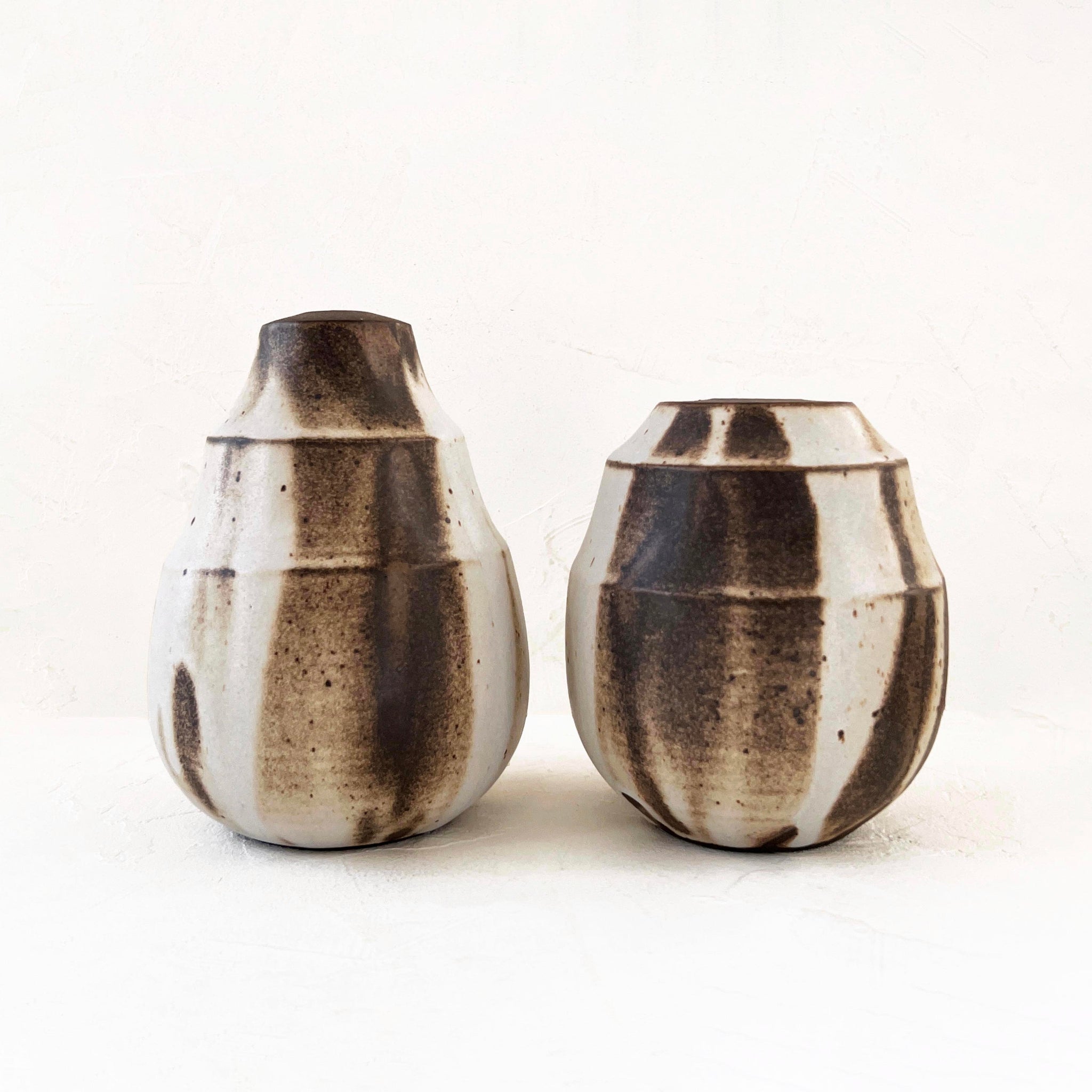 Elevate your decor with this elegant speckled vase in deep chocolate brown with cream accents. Perfect as a standout piece or paired for added charm.