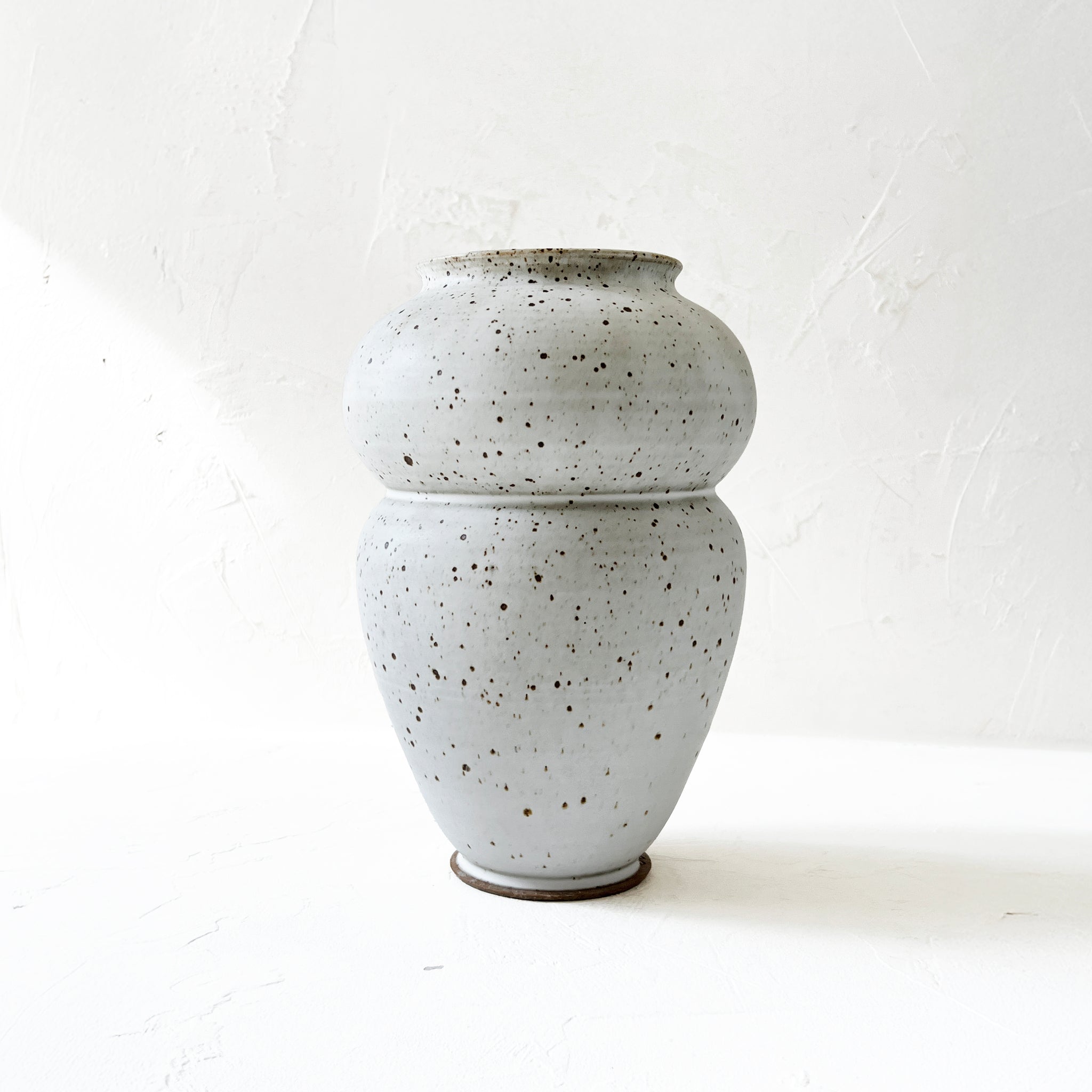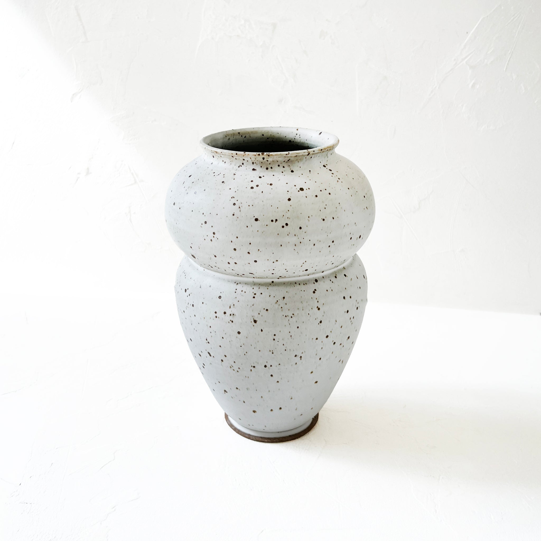 A classic matte gray vase with light speckling throughout. Its glazed interior makes this vase suitable for both fresh and dried flowers.