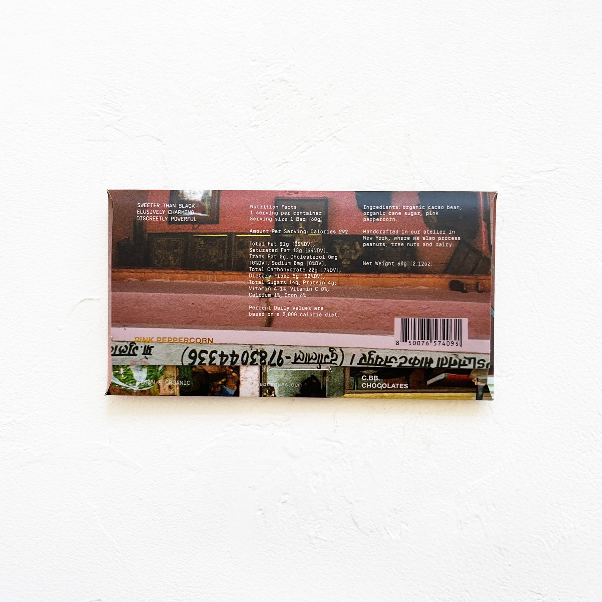 Ingredients: Organic cacao bean, Pink Peppercorn, organic cane sugar.