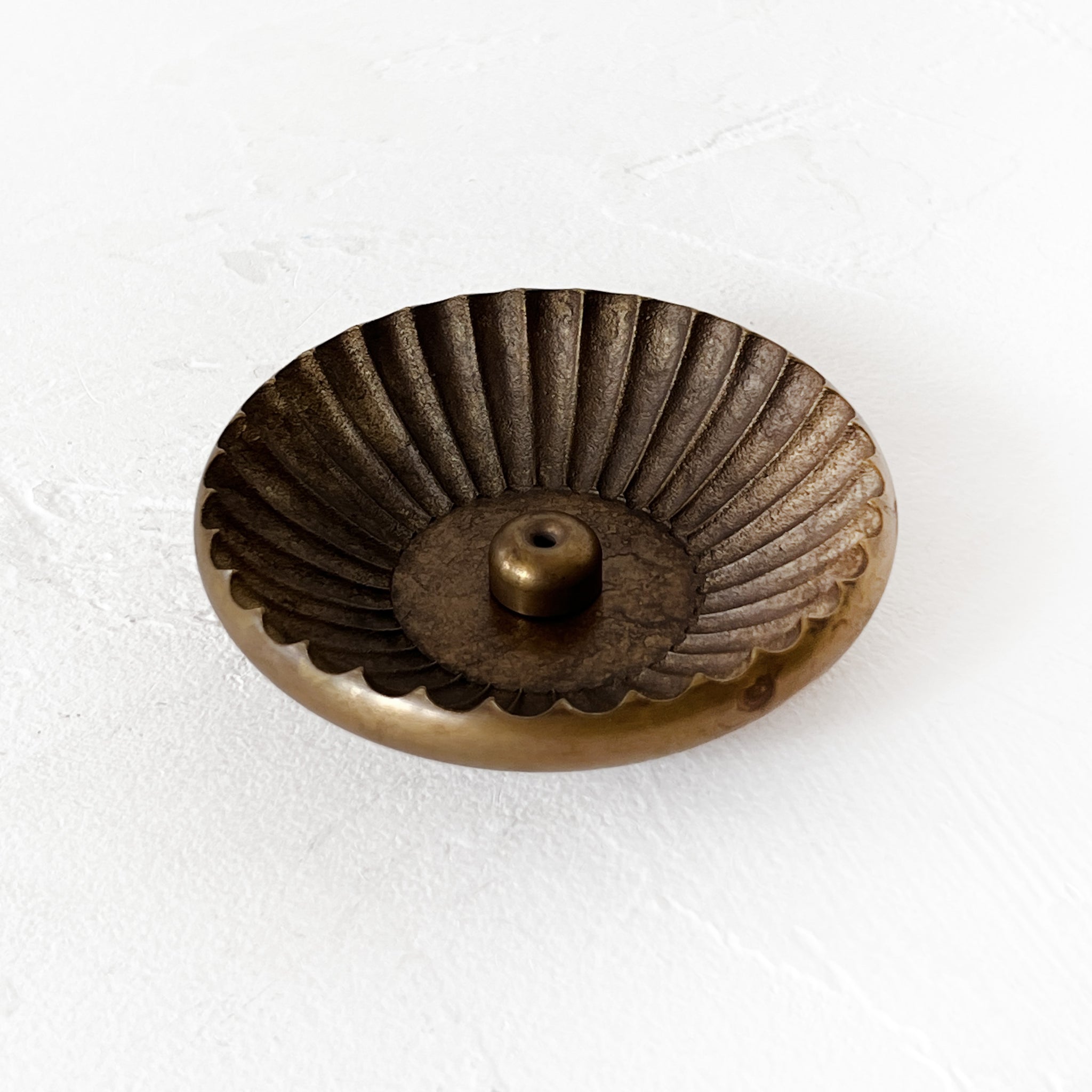 Handmade Chrysanthemum stand crafted from solid brass. Originally a Buddhist ritual object, it has been artfully transformed for modern living spaces. Each stand is meticulously hand-finished using techniques perfected over 400 years, ensuring exceptional artistry and quality. A special coloring treatment gives each piece a unique hue.