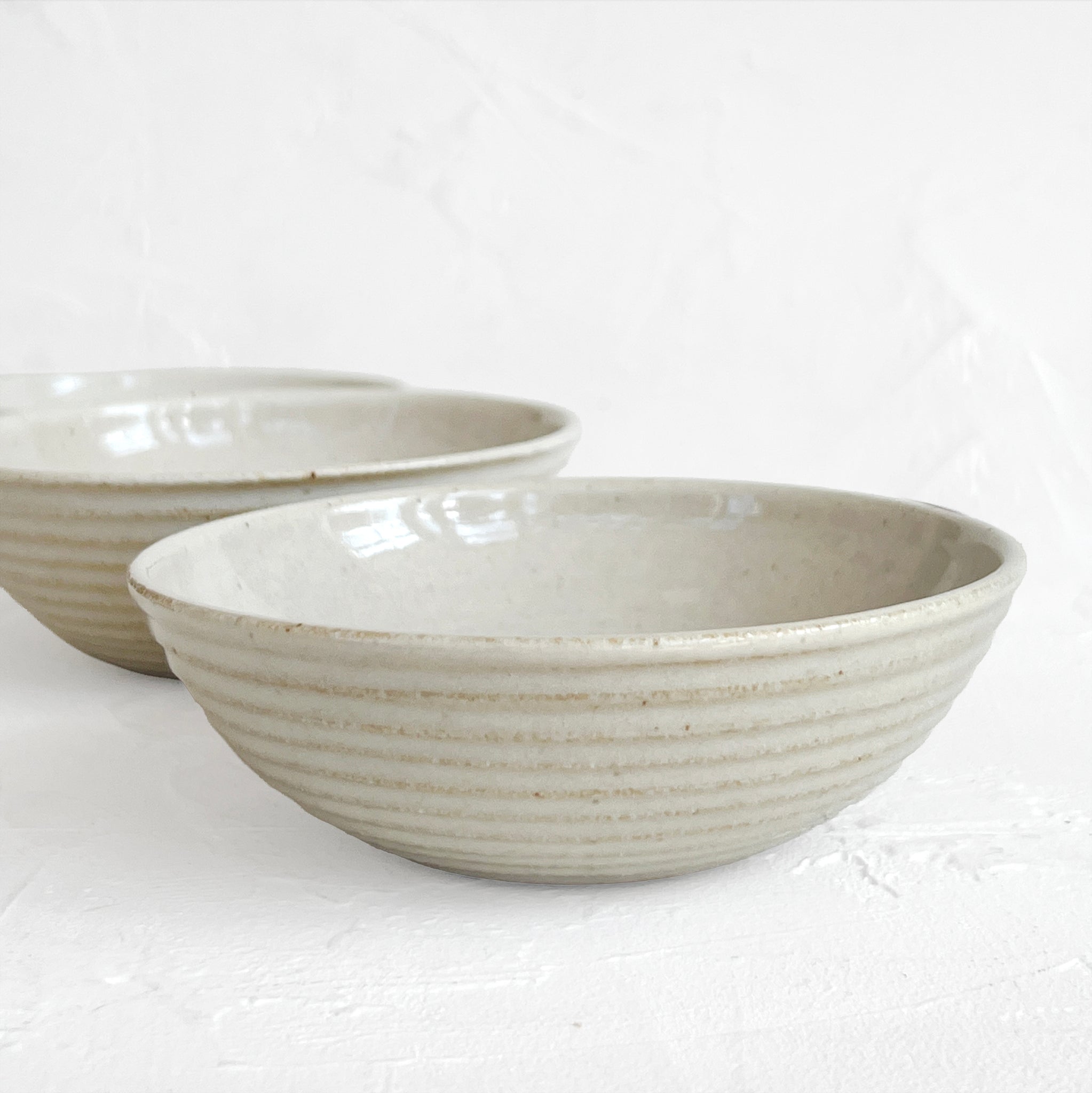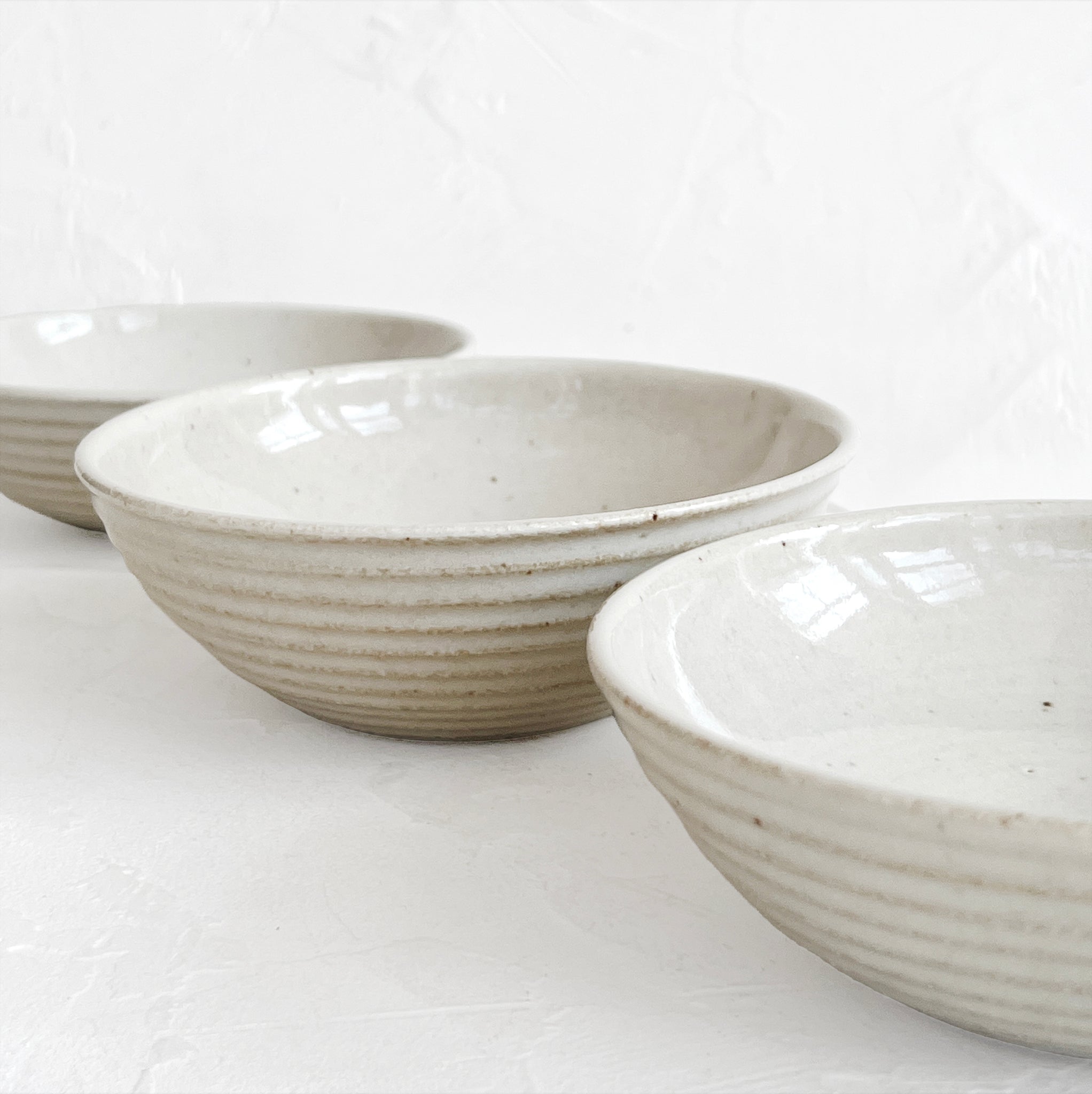 Beautifully lined bowl, featuring a creamy white glaze. It's the perfect size for serving rice, nuts, or delightful small appetizers.