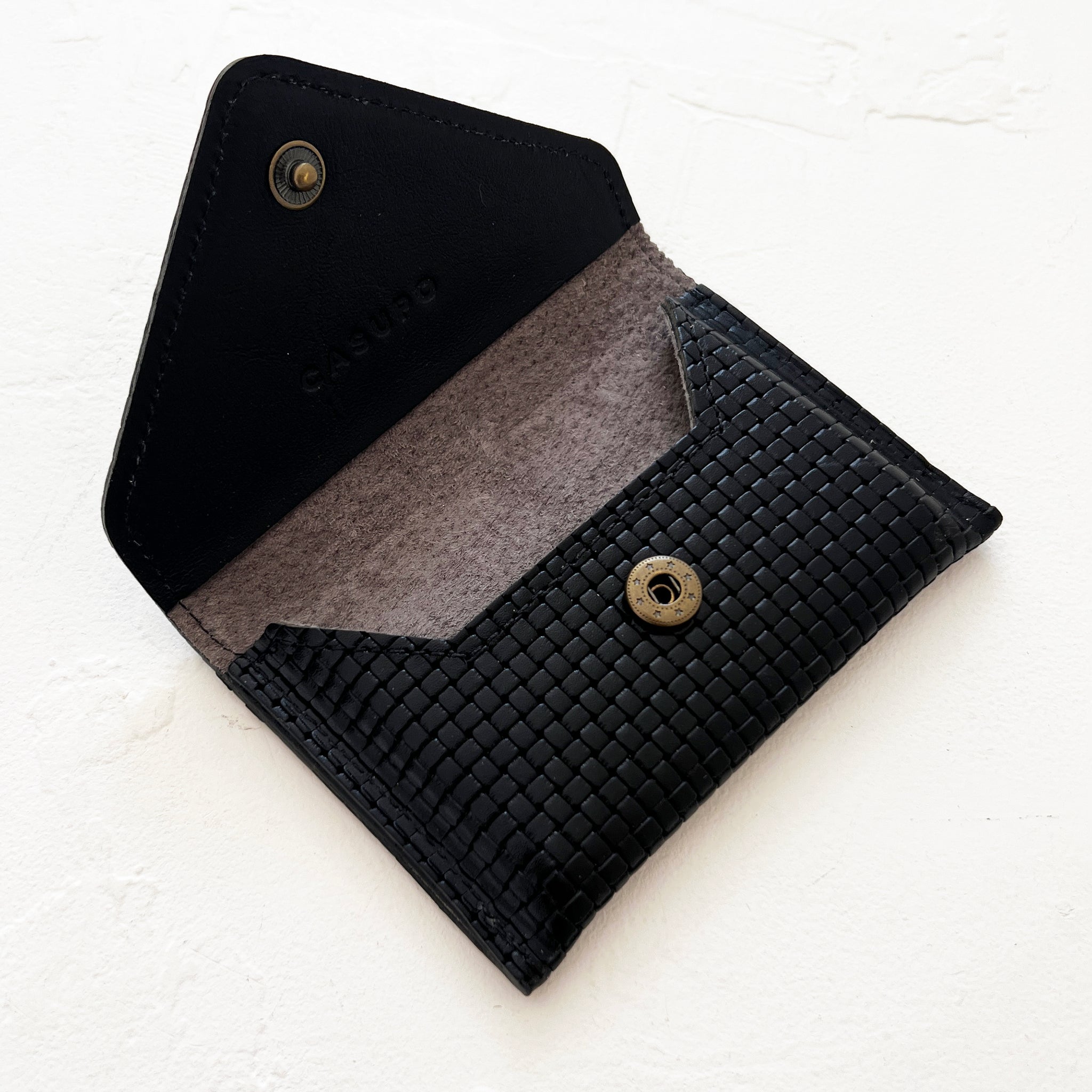 The perfect blend of style and security with this compact envelope card holder! Made from hand-tanned Italian leather, its stunning woven embossed texture and chic grey suede lining make it a true standout. With only 50 pieces available, you can enjoy a unique accessory that offers thoughtful RFID protection against unauthorized scanning. Plus, it holds your essentials effortlessly—over 20 business cards, 12 credit cards, or cash folded in half—keeping everything organized and secure.