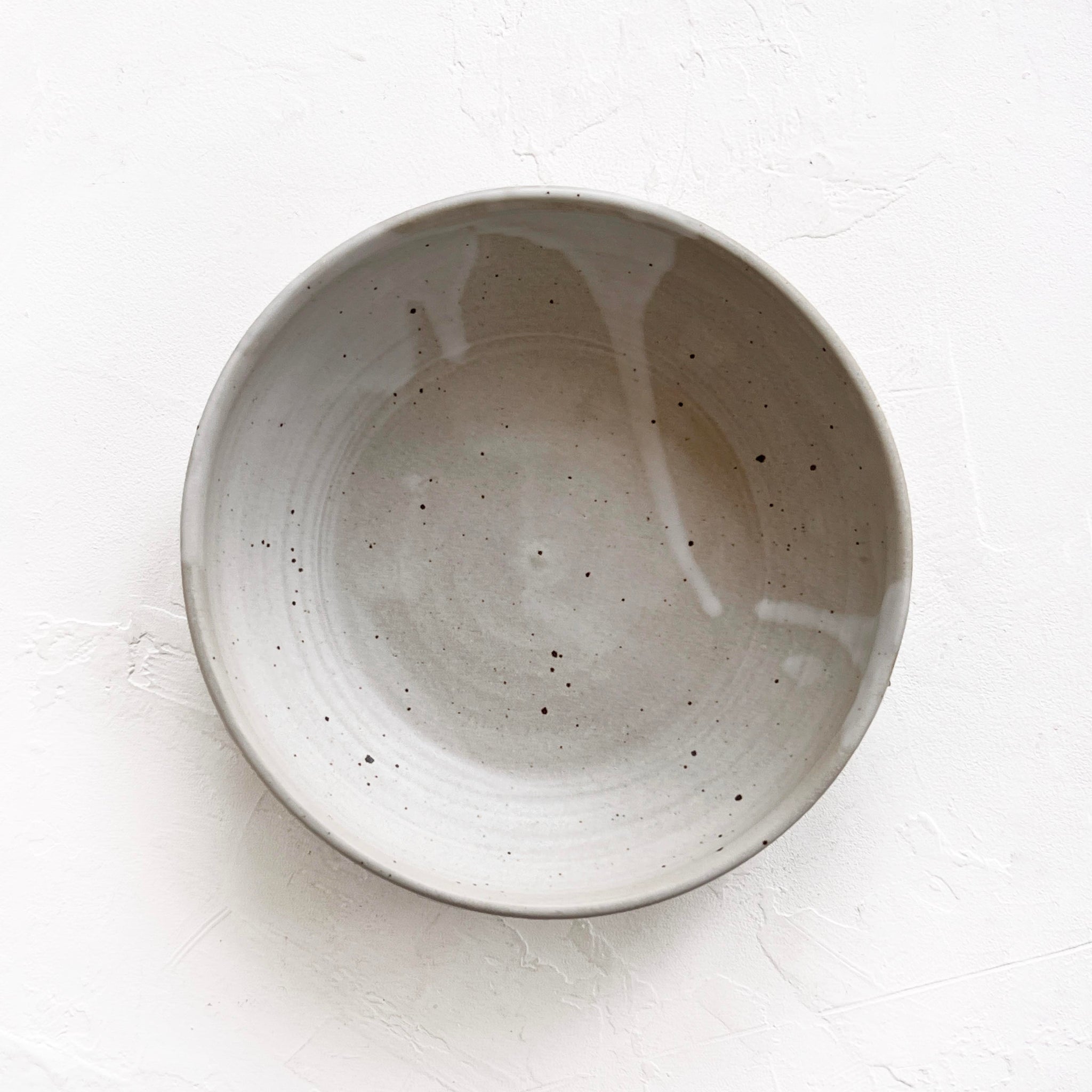 The perfect-sized pasta dish. Matte glaze in cream and grey tones. The edges are slightly uneven, making them perfectly imperfect. They are delight to hold and to use daily. Hand wash for lasting use. Food safe.