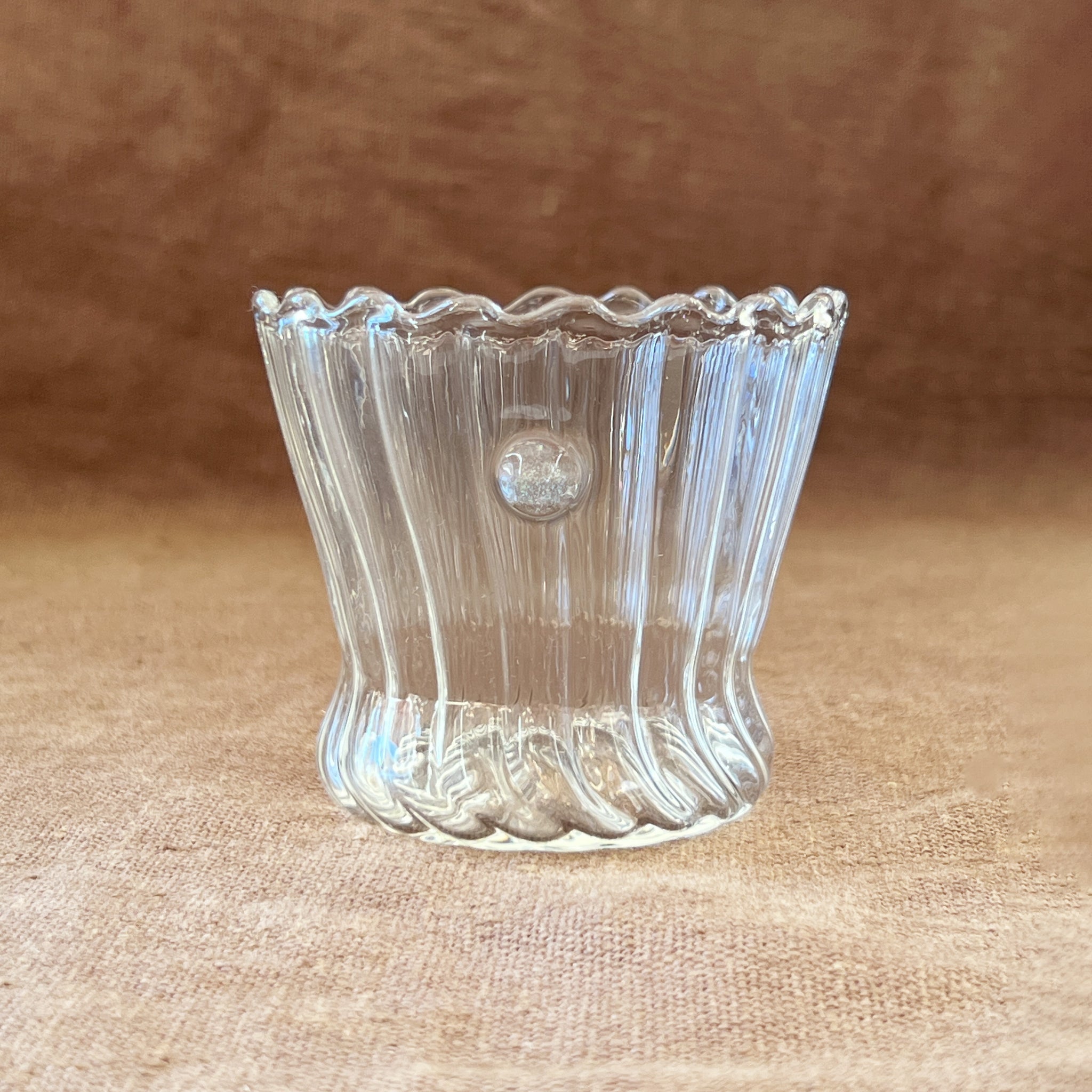 Hand blown cups featuring an organic, wavy rim, crafted from durable borosilicate glass ensuring exceptional longevity. These cups are suitable for both hot and cold beverages. Although they are dishwasher safe, we recommend hand washing for the best care. Please note that due to their hand blown nature, sizes and shapes may vary.