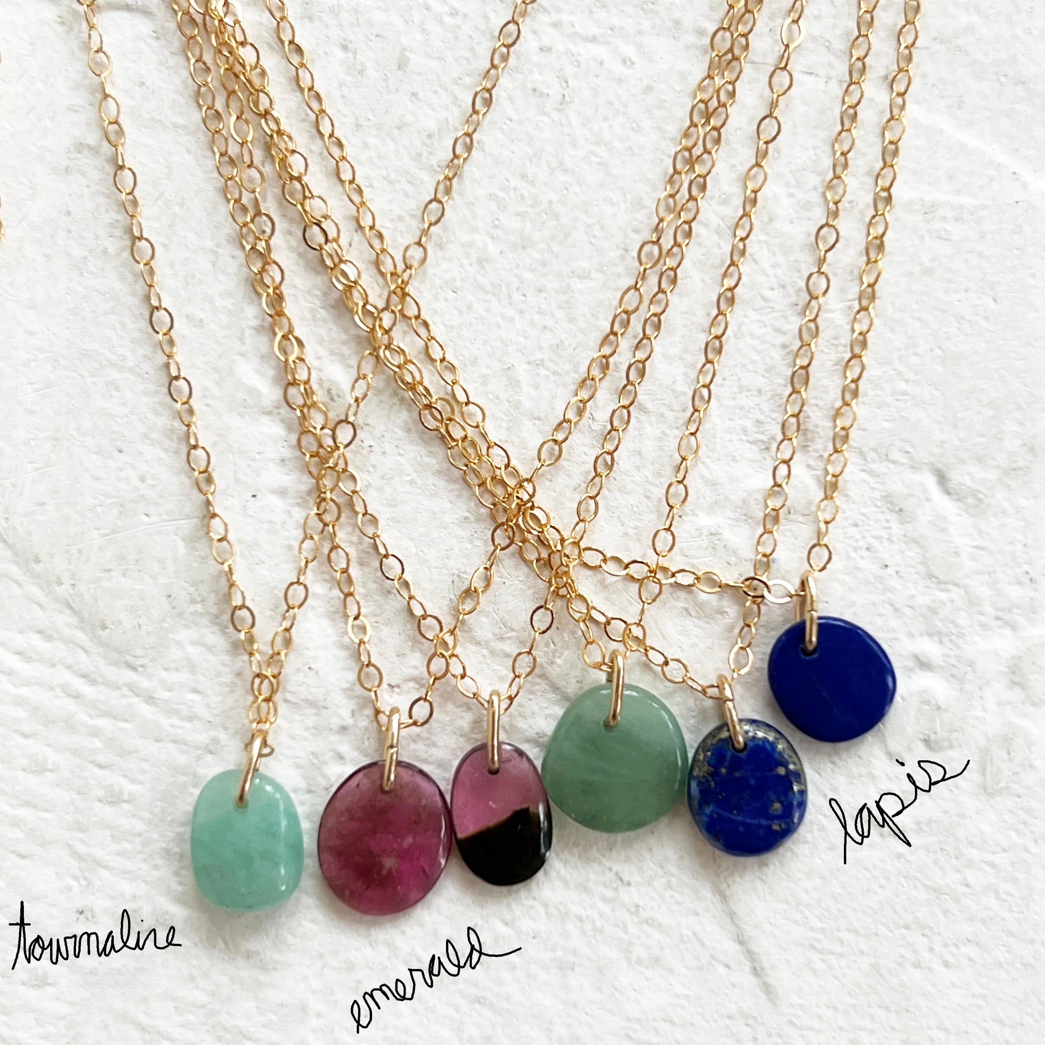 A smooth, one of a kind, hand cut and carved semi-precious gemstone suspended from a delicate gold cable chain. Its uneven edges and organic form give each piece its own subtle charm. Simple and minimal, yet adding a touch of color and character, it layers beautifully with other necklaces or stands alone as a small amulet of earthly elements ~ a rough gem imbued with the history, lore, and enduring power of the natural world.