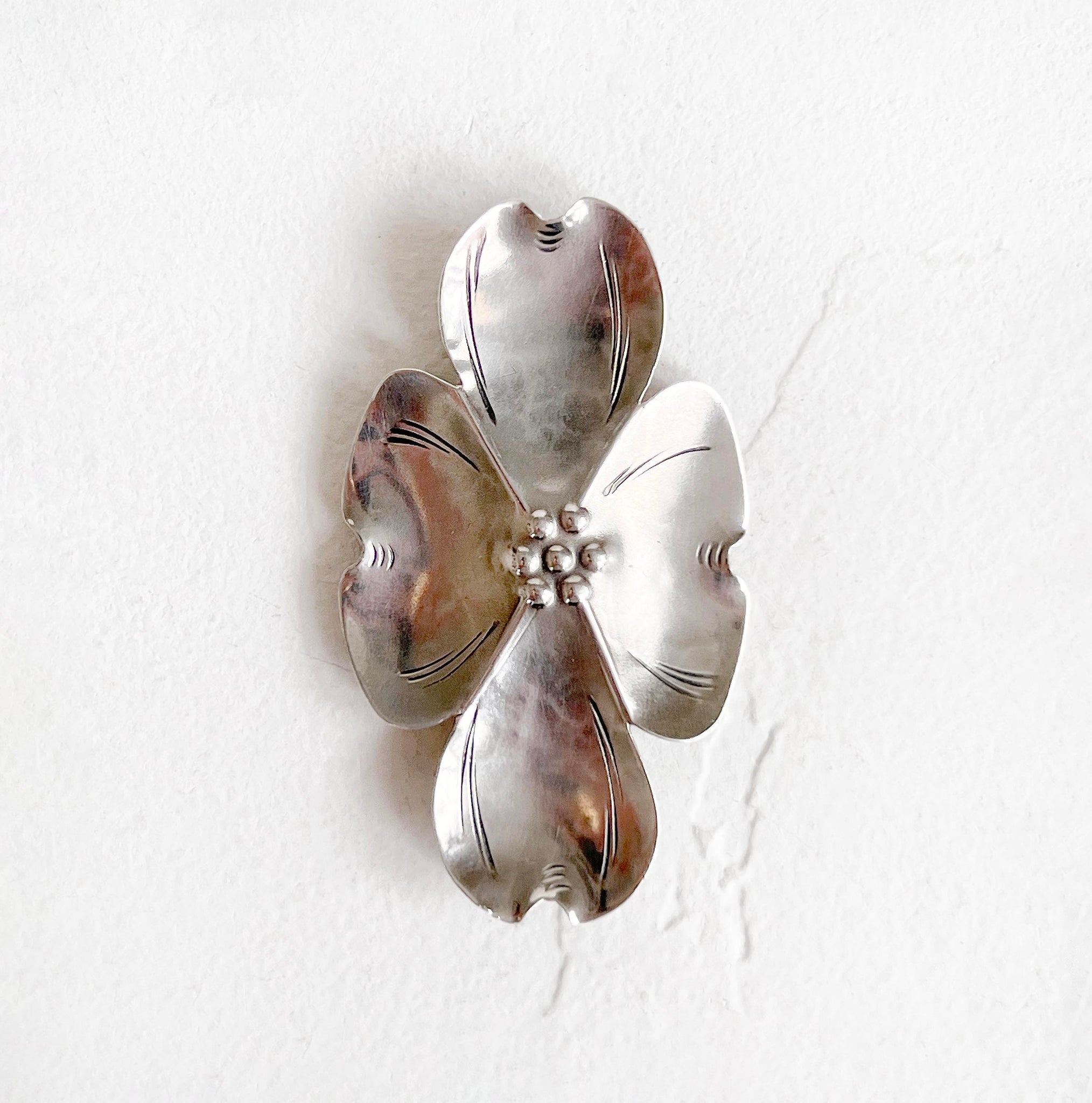 Timeless vintage Stewart Nye Sterling Silver dogwood brooch, crafted in the 1960s. In excellent condition.