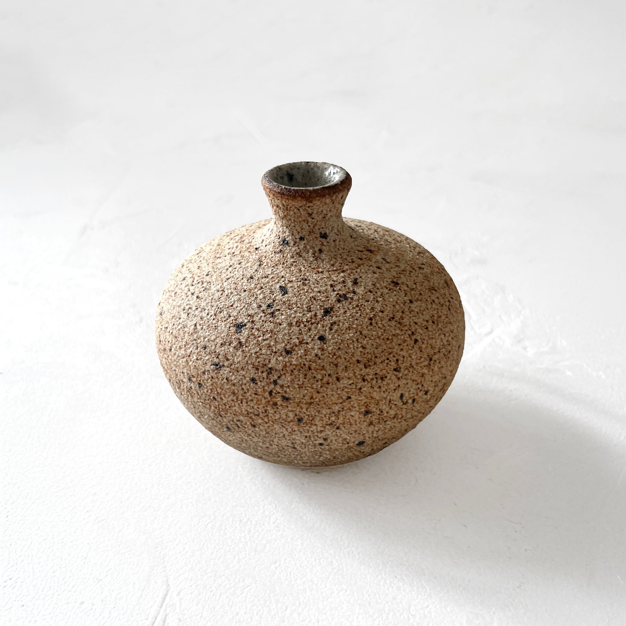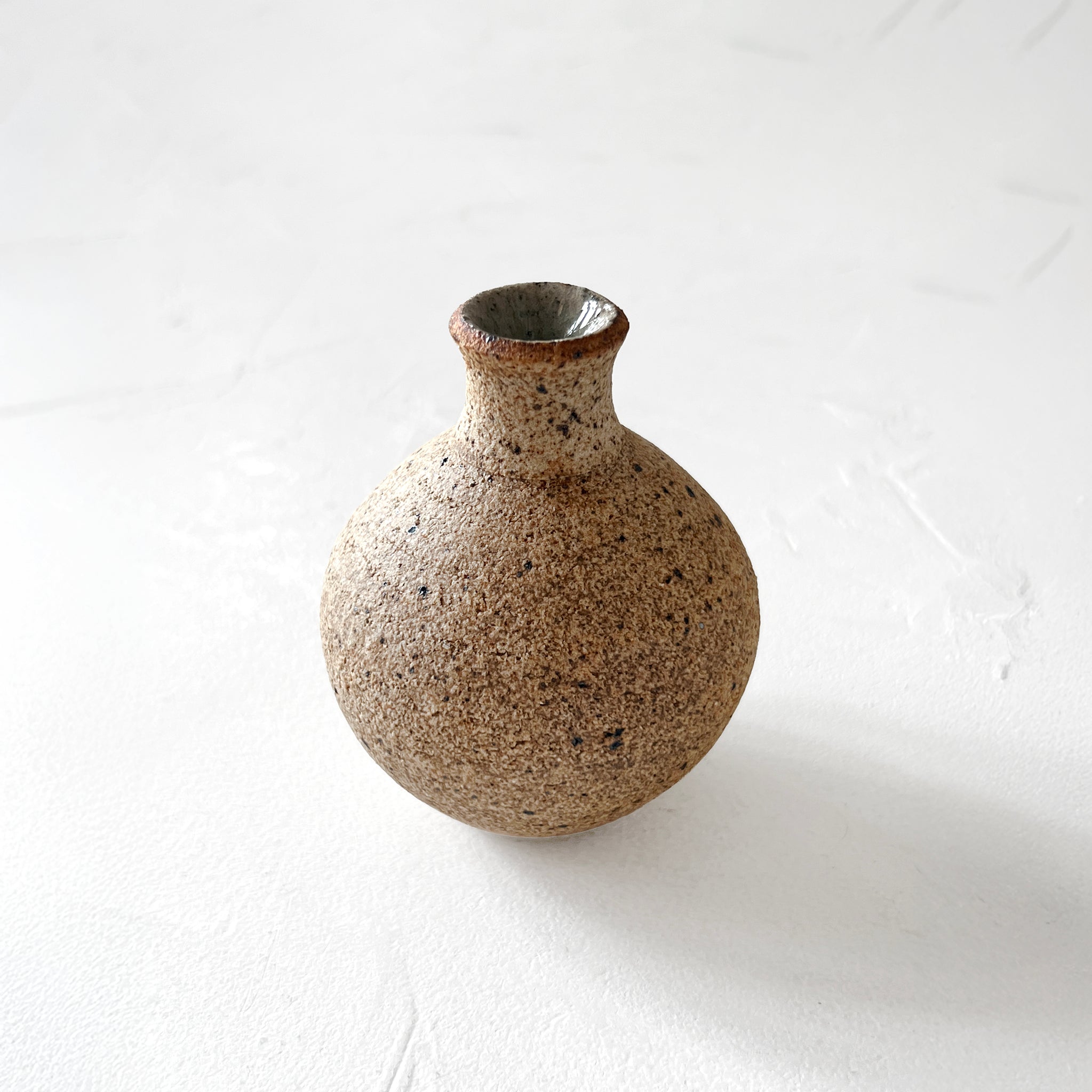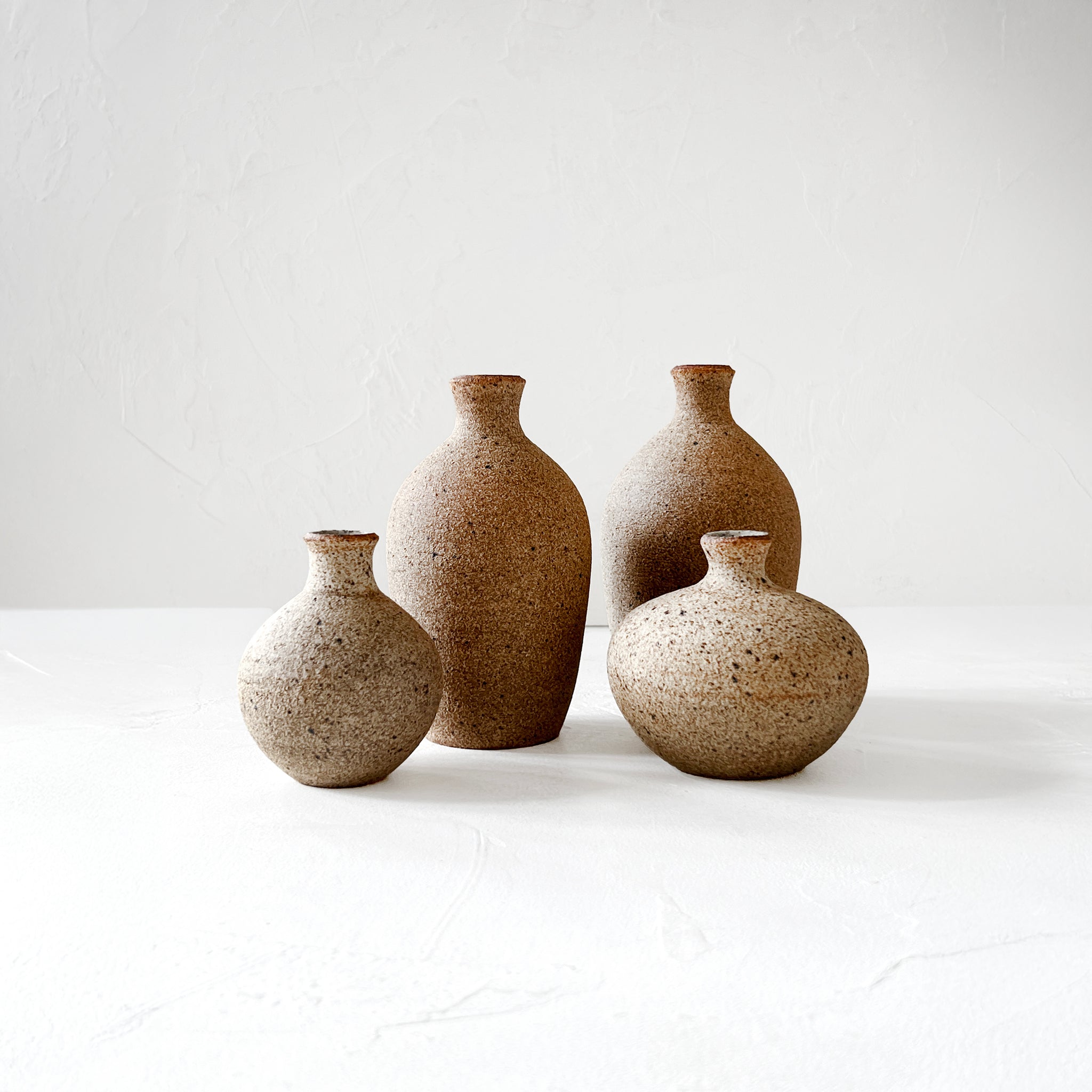 Wheel-thrown bud vase made of warm, sandy, unglazed stoneware. Perfect for holding one of your favorite flowers or for use as a decorative grouping.