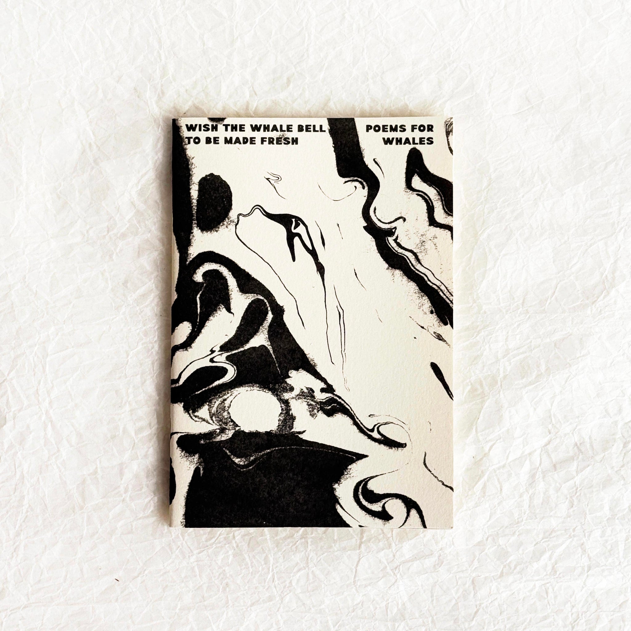 "Wish the Whale Bell to be Made Fresh" is a collection of poems by 40 poets and artists. Each poem addresses the theme of whales in a unique and innovative way, often exploring their connection to the ocean and the importance of protecting these majestic creatures. The collection reflects a collective desire to rejuvenate our relationship with whales. Accompanying the poems are suminagashi prints that symbolize the echoes of whale song.