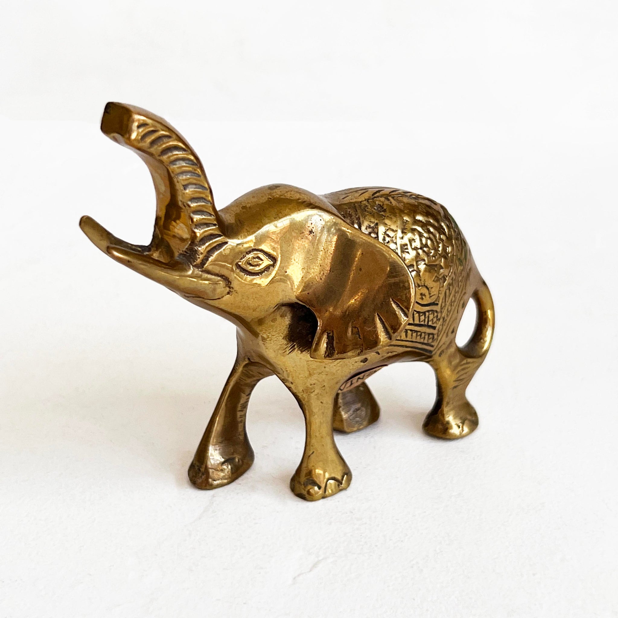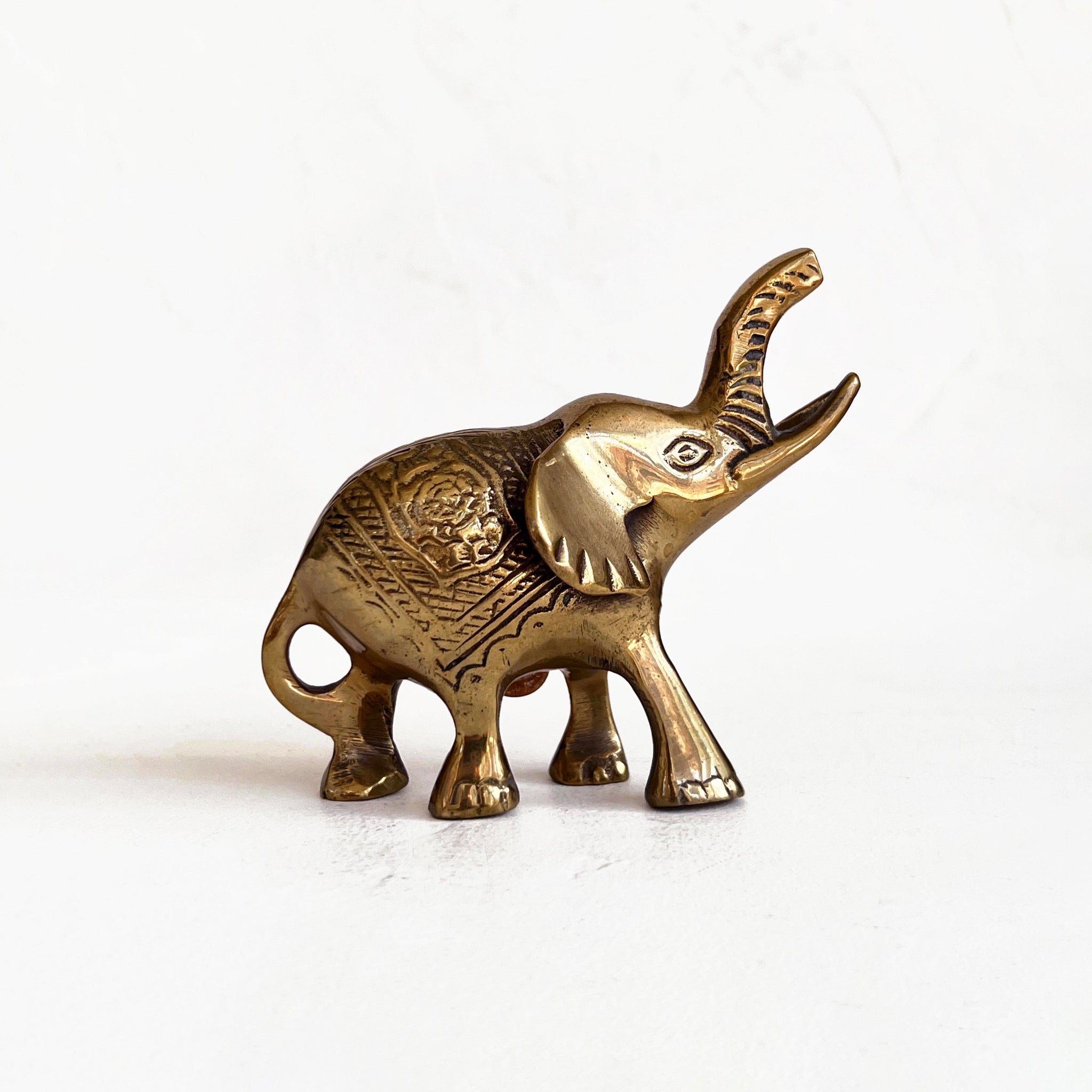 Vintage mid-century elephant sculpture featuring intricate detail and charm. Crafted in India and in excellent vintage condition.