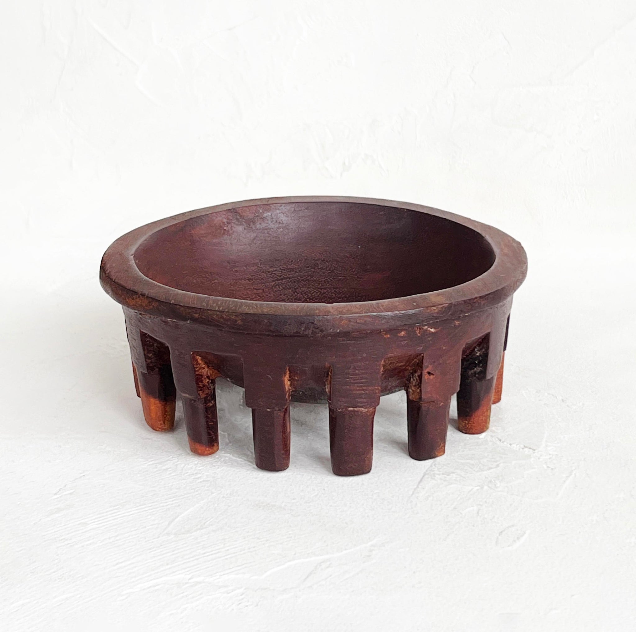 20th century Samoan wooden kava bowl, carved from a single piece of wood and supported by 14 (medium) or 16 (large) round legs. Kava bowls are traditionally used for mixing a sedative drink made from the roots of the kava plant, which are crushed into a powder and mixed with water. Bowls like this one have become important symbols of Samoan hospitality. This piece is in excellent vintage condition.