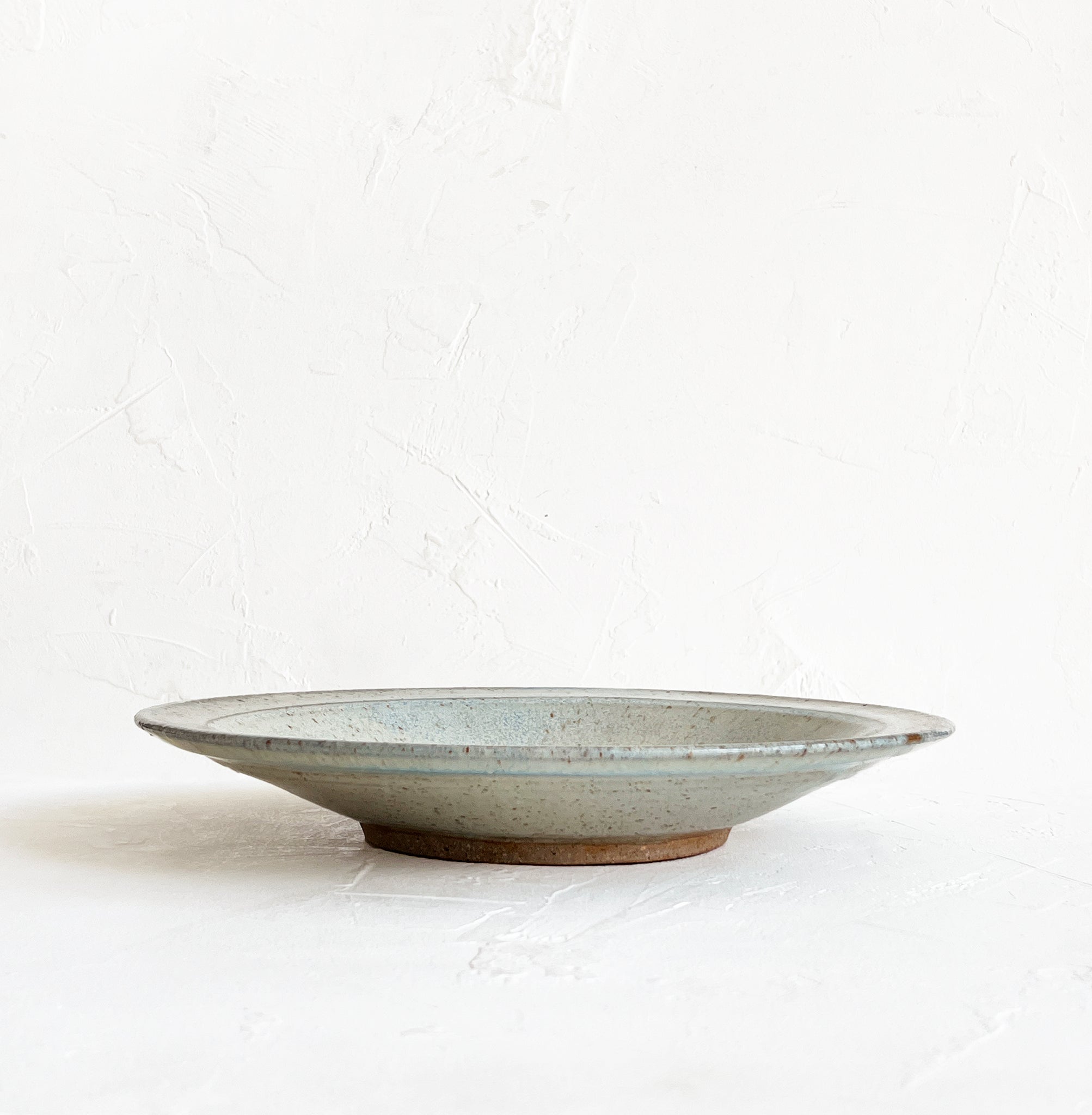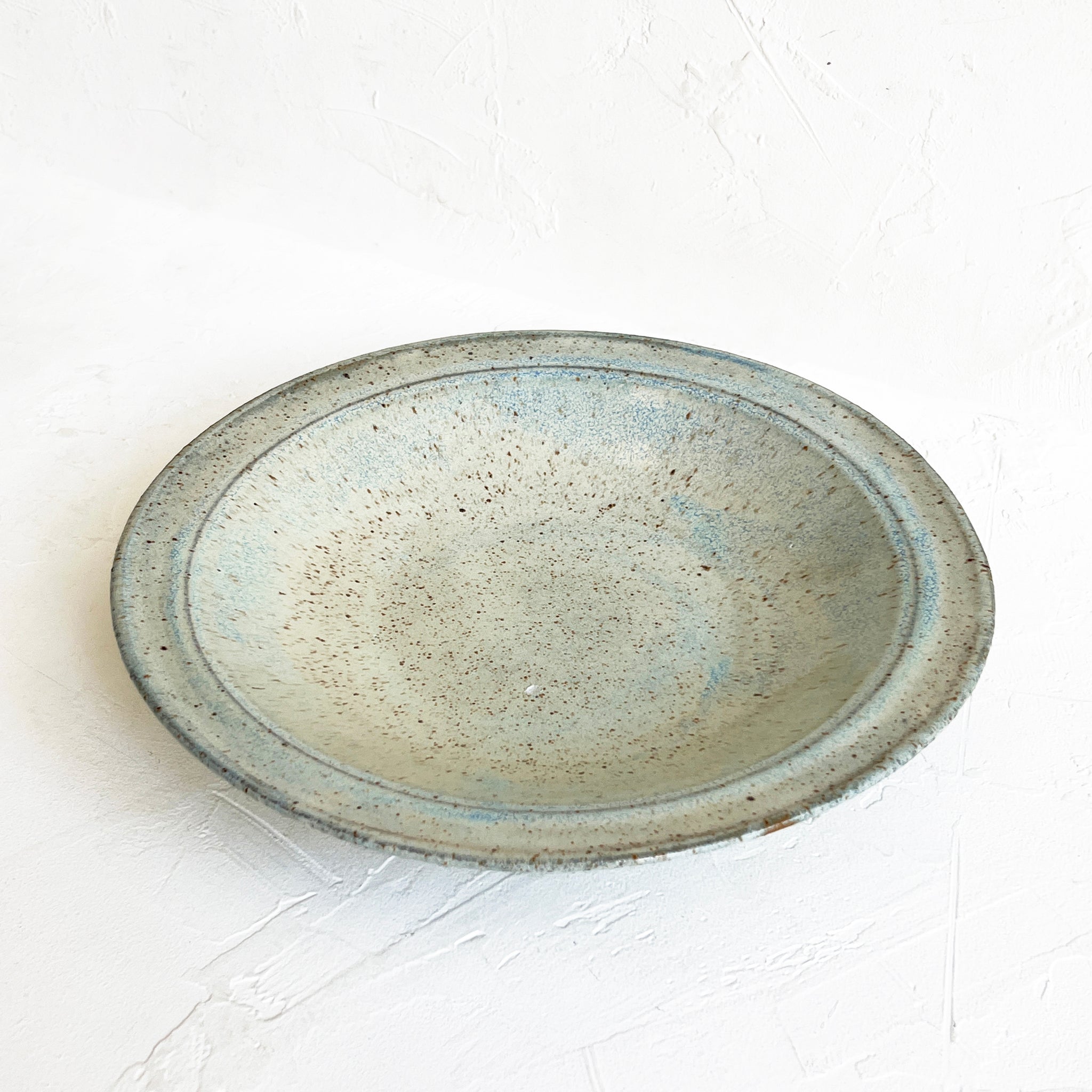 Charming vintage low bowl in a delightful robin's egg blue, beautifully accented with earthy brown speckles. It's not just a stunning decorative piece; it’s also the perfect solution for keeping your fruits organized and easily accessible on your counter.