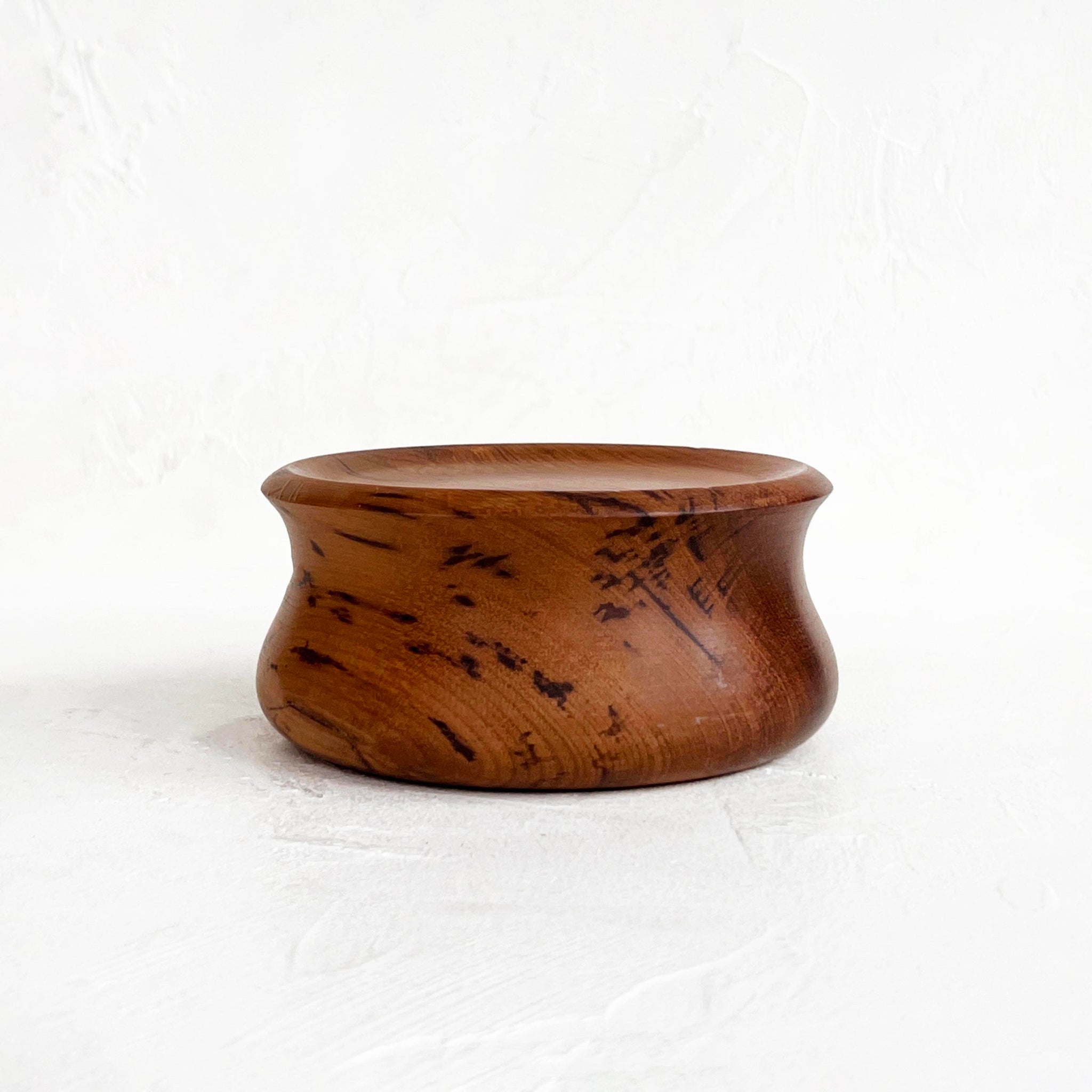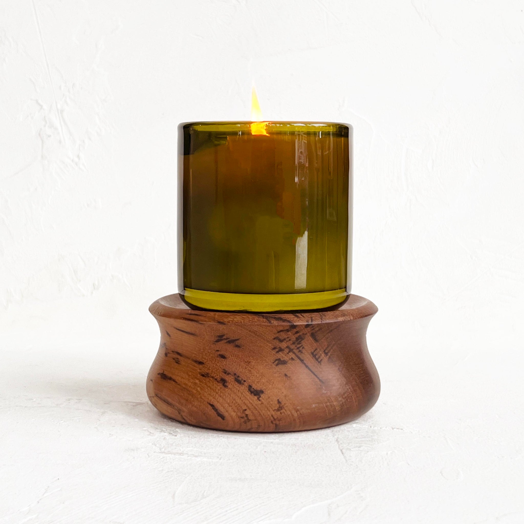 Beautiful myrtlewood pillar candle holder produced on the Oregon coast. This vintage piece would make a great table centerpiece and could pair well with other wood candle holders.