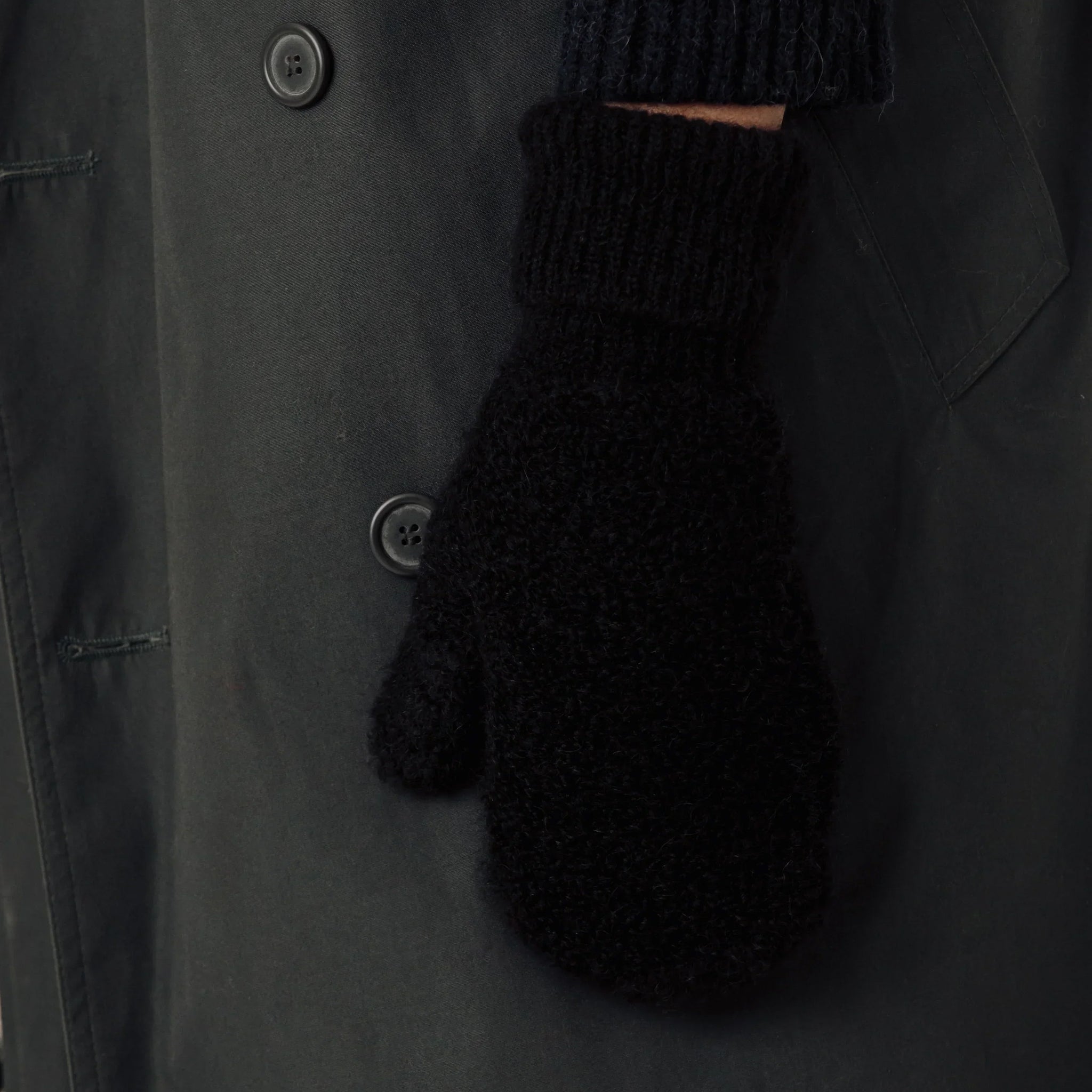 Crafted from soft, textured boucle yarn with brushed ribbed cuffs, featuring a fold-over design that can be worn turned up or extended as an arm warmer—perfect for cold-weather layering. Ethically made in Lima, Peru.