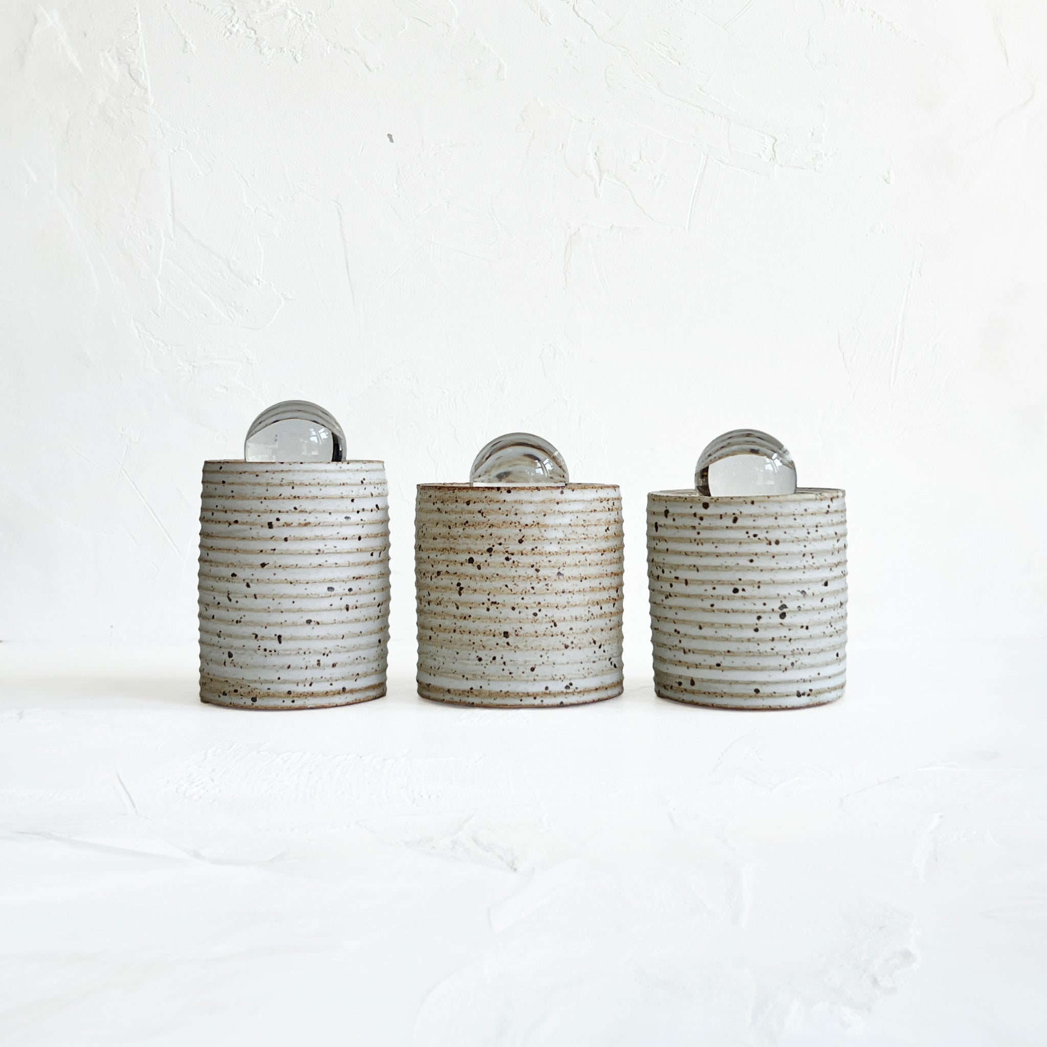 Beautiful handmade glass globe vessel with a warm matte finish, perfect as a decorative object, small storage solution, or bud vase.