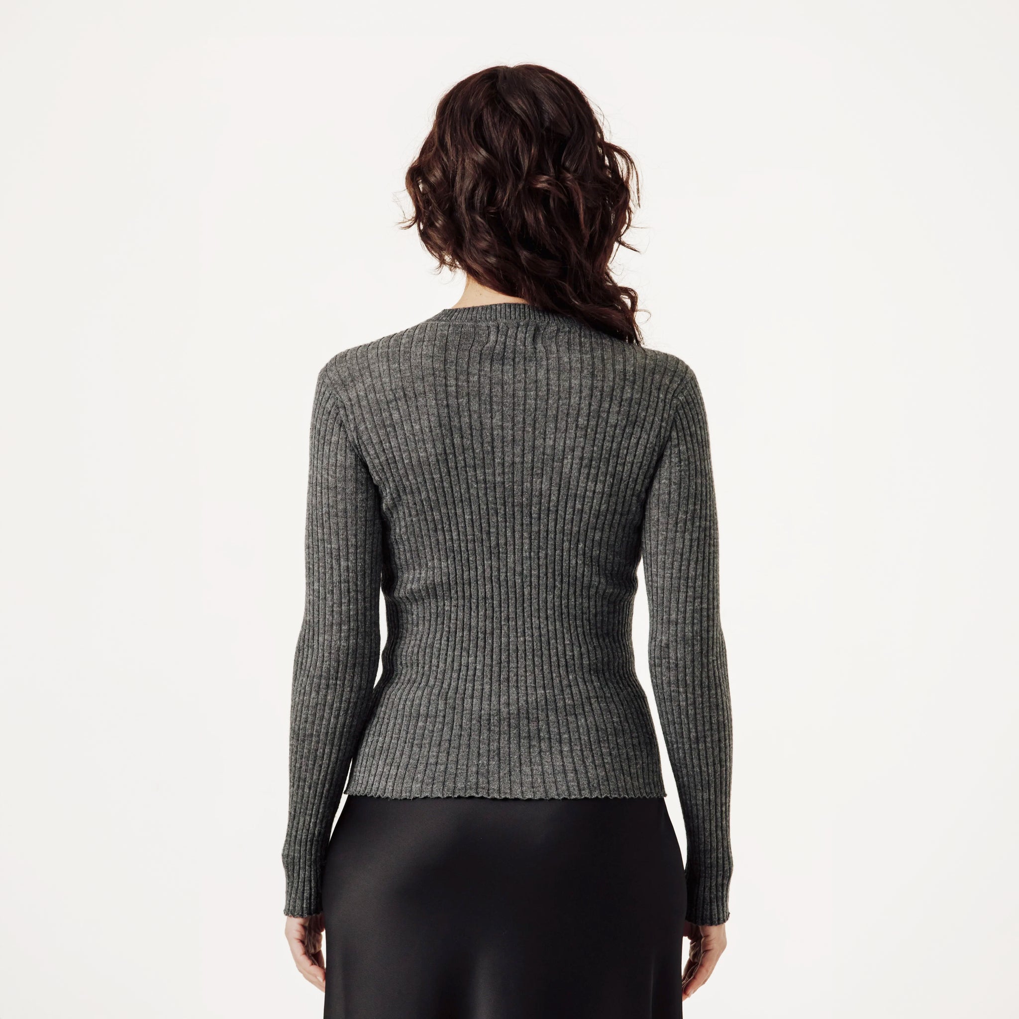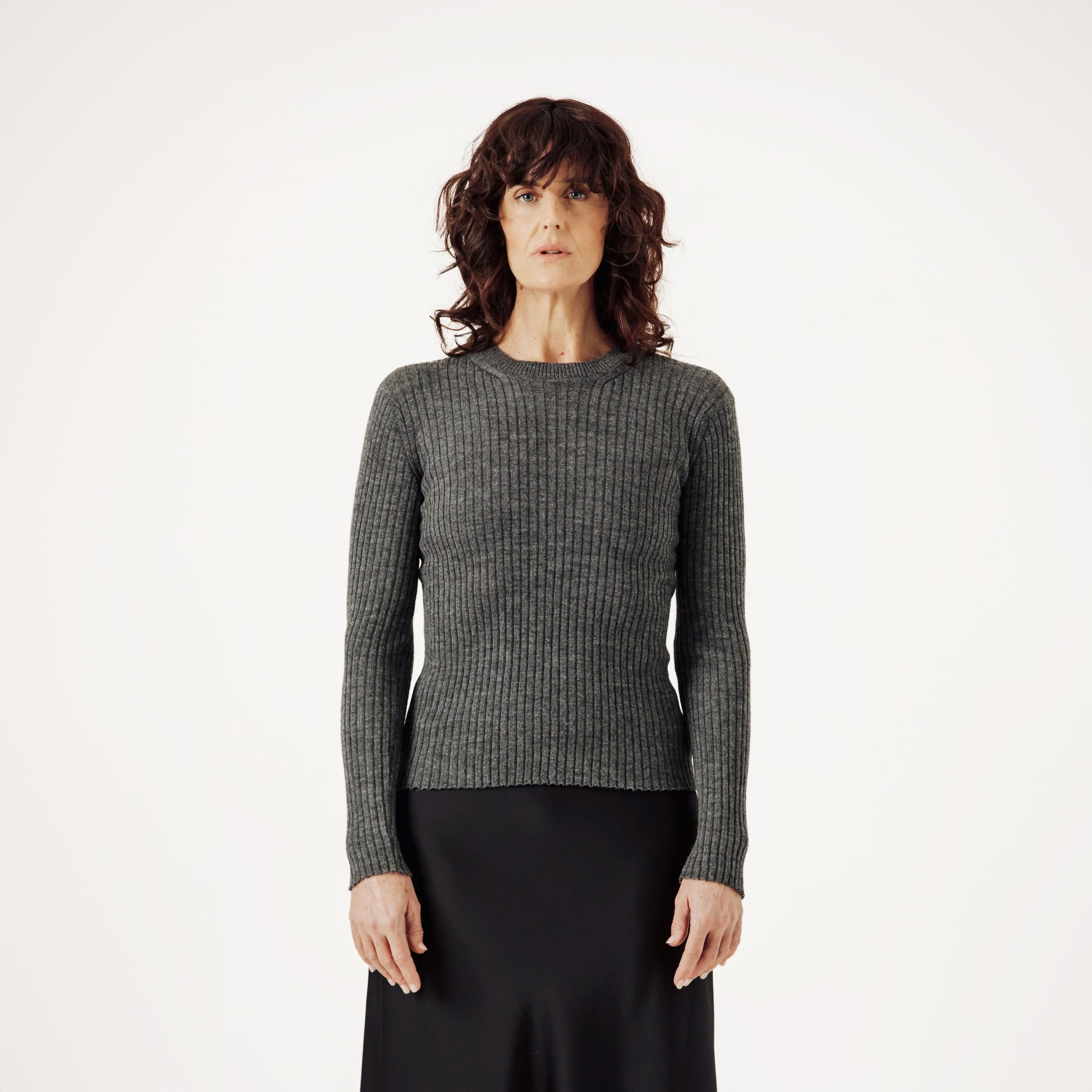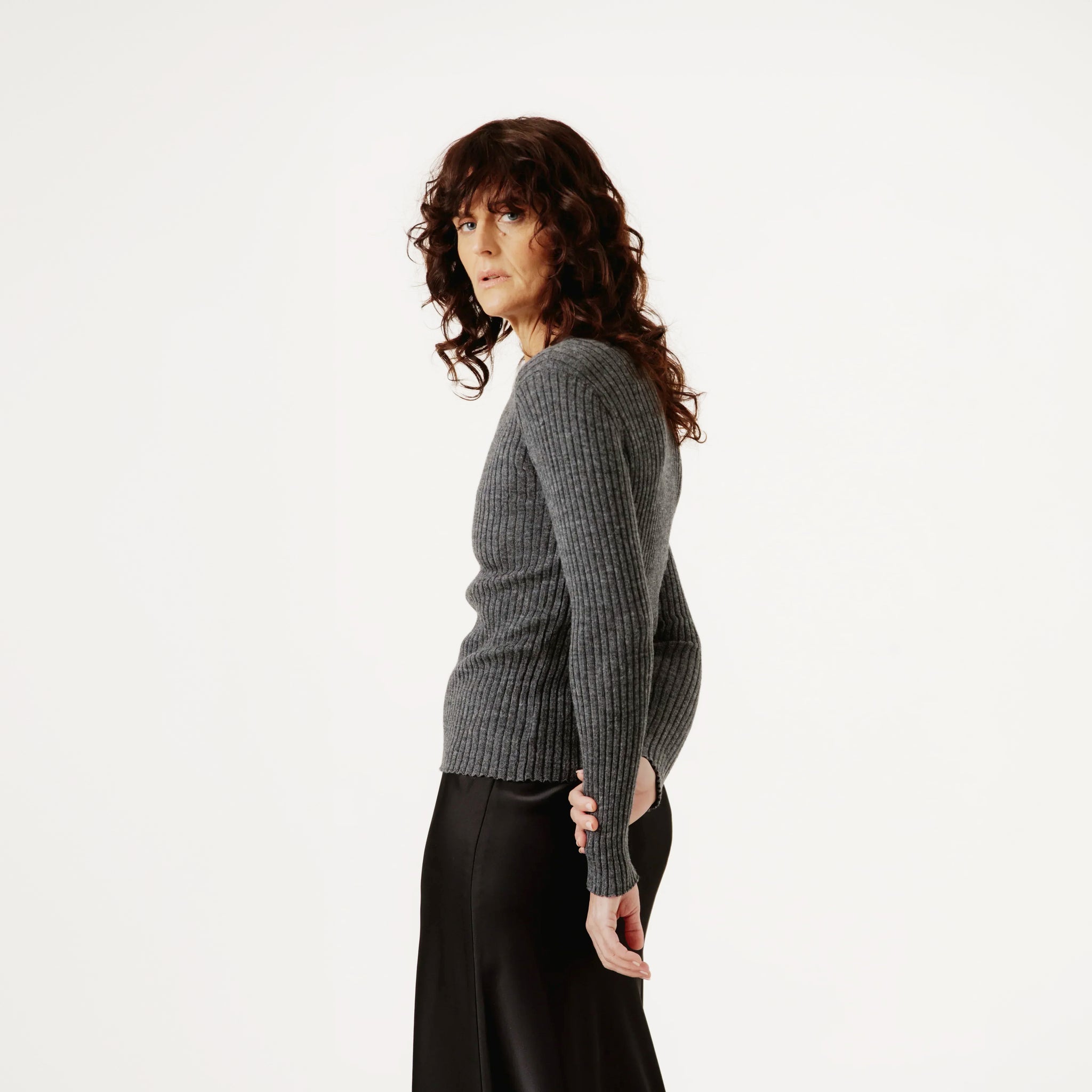 A refined wardrobe essential crafted from a lightweight baby alpaca and merino wool blend. Featuring a fine, clean-knit texture, it offers lightweight stretch and natural comfort. Designed for effortless layering or polished standalone wear across seasons.