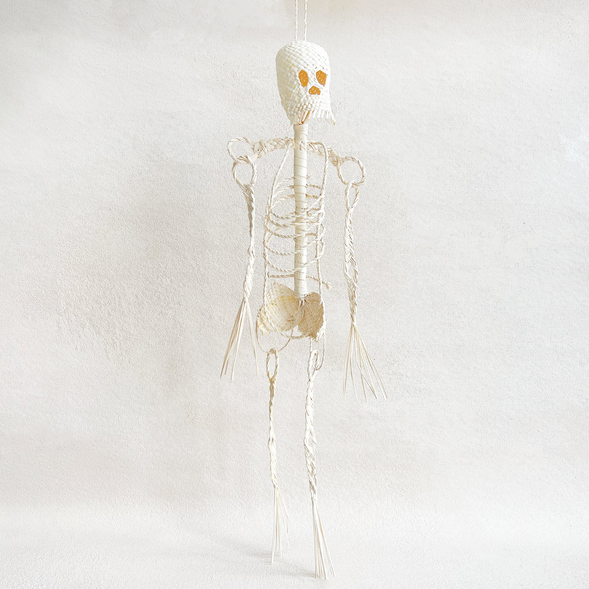 Playful woven palm skeleton handmade in Mexico for the Day of the Dead. A fun wall hanging for the holiday or a conversation piece for any day.